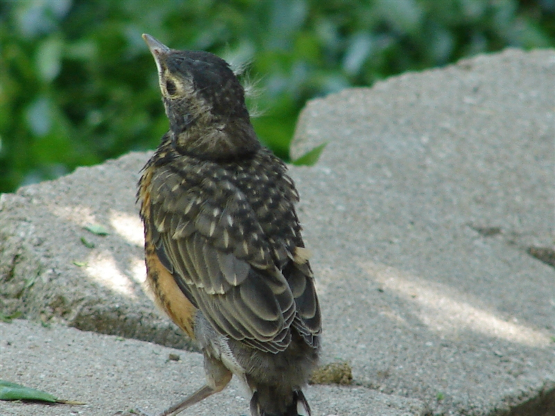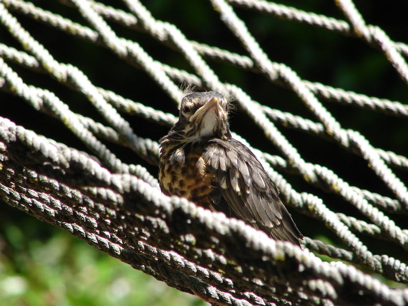I grabbed my camera and followed its journey as it hopped away. In a flash, Mother Robin flew down beside its struggling baby, making sure it was okay. Finally the little bird flew up to my back yard hammock and huddled there for hours. Was the bird’s flight premature? Would it survive? I watched, spellbound, then smiled as Mother Robin swooped down and comforted her baby again, bringing it food even as it rested in the hammock.